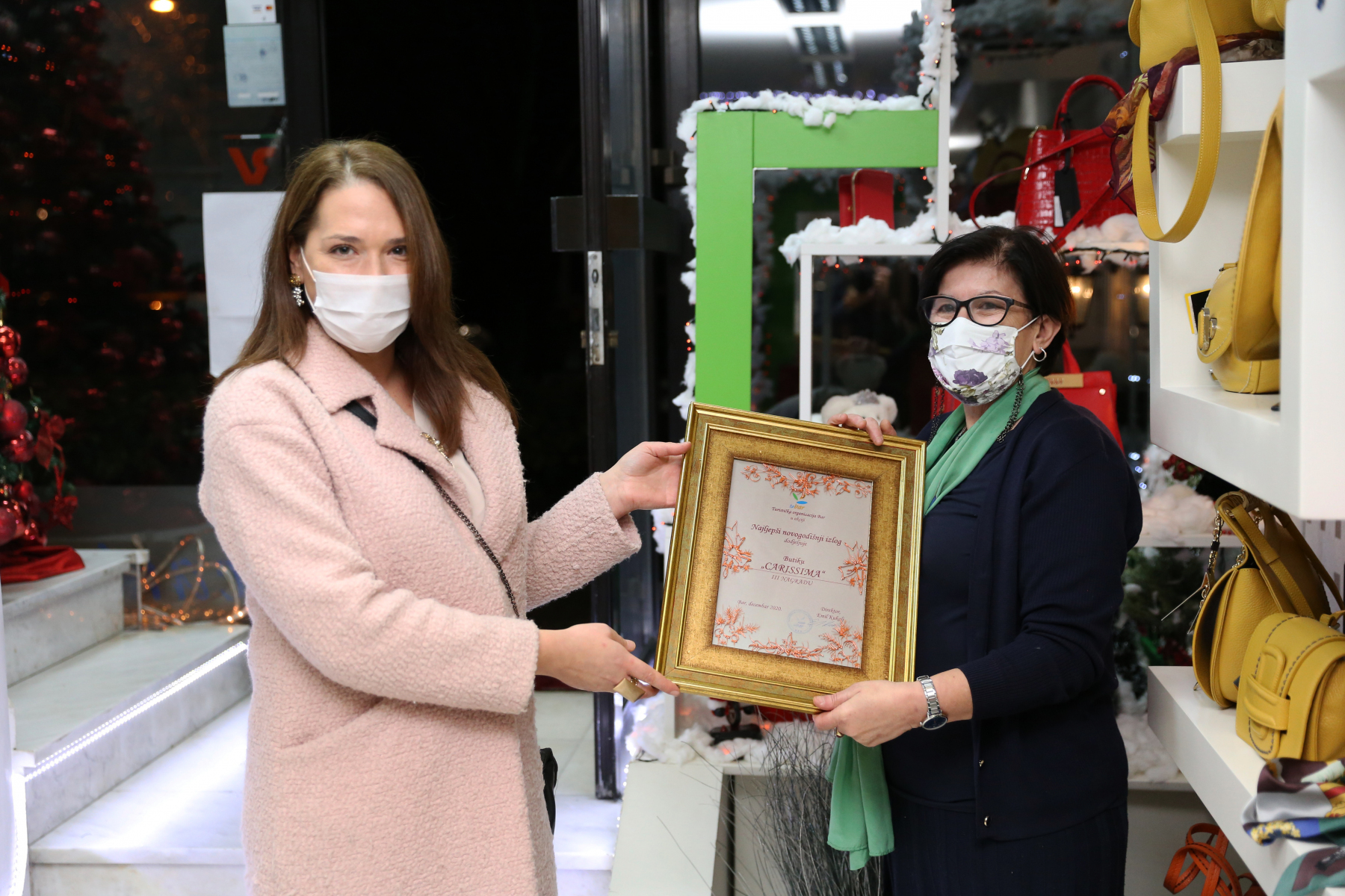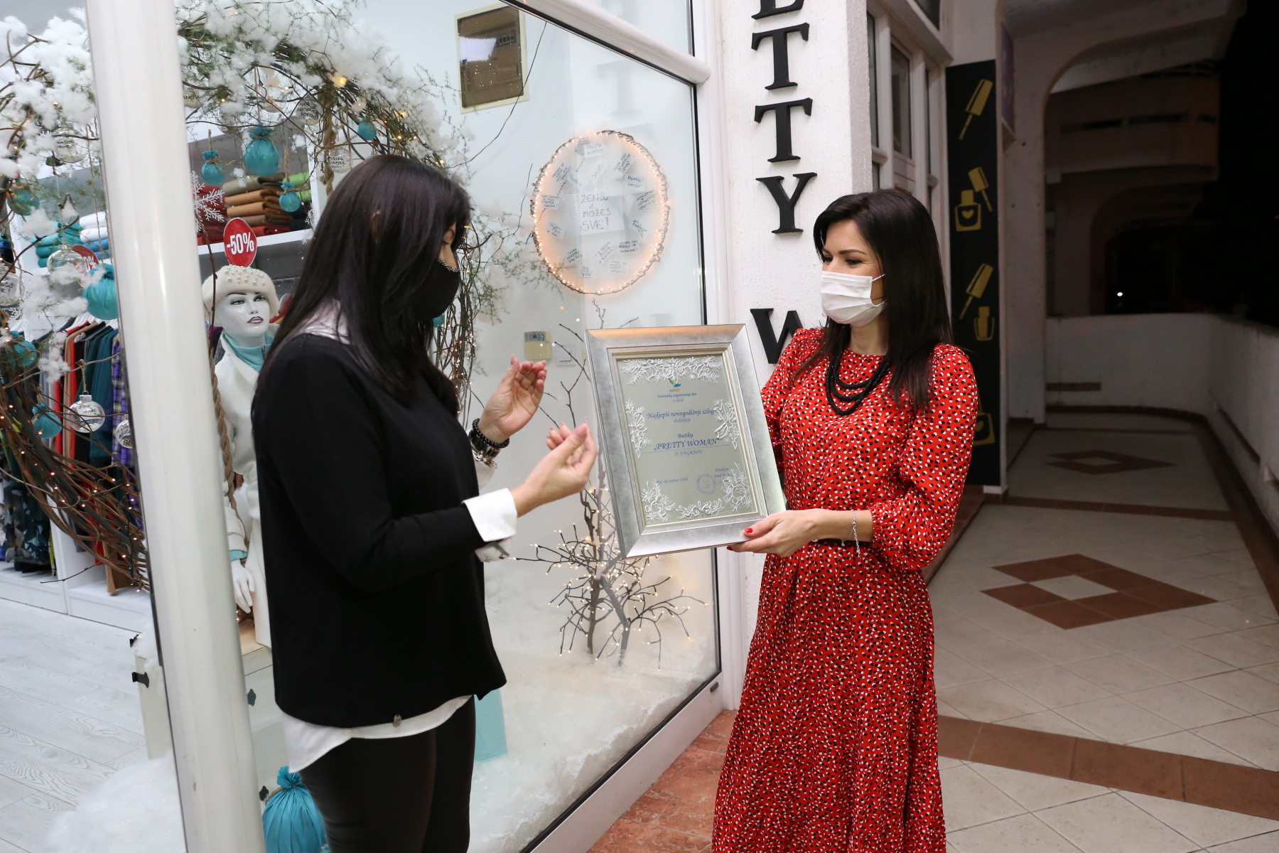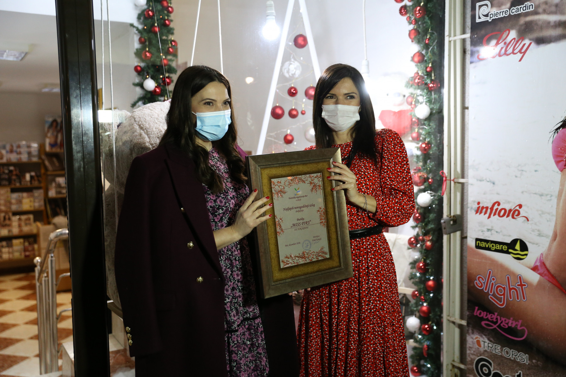 Prvo mjesto osvojio je butik „Šarm“ čiji izlog predstavlja pravu novogodišnju priču, sa daškom glamura. Drugo mjesto pripalo je butiku „Pretty woman“ koji je svoj izložbeni prostor ukrasio ručno rađenim ukrasima i inspirativnim porukama namijenjenim ljepšem polu. Treće mjesto su, po mišljenju komisije, zaslužili butici „Miss Piru“ i „Carissima“ – tandem koji godinama osmišljavaju predivne, usklađene dekoracije svojih novogodišnjih izloga.