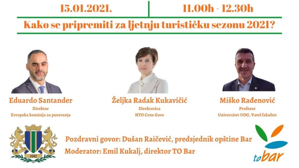 U ljetnju turističku sezonu 2021. ulazimo sa umjerenim optimizom, jedan je od zaključaka online (Zoom) panel diskusije „Kako se pripremiti za ljetnju turističku sezonu 2021“ koju je danas organizovala TO Bar.