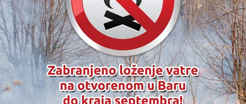NAREDBA PREDSJEDNIKA OPŠTINE: ZABRANJENO LOŽENJE VATRE NA OTVORENOM U BARU DO KRAJA SEPTEMBRA
