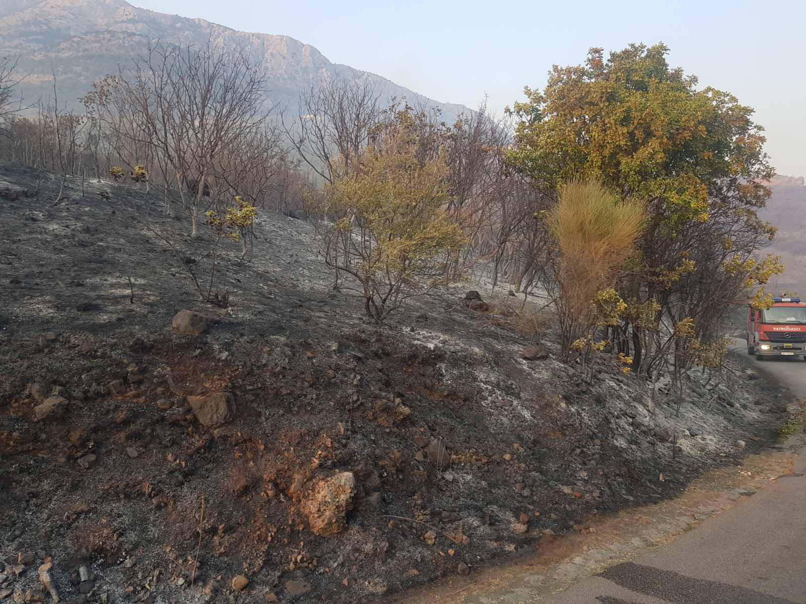 Vatra je izbila oko 15 sati i zahvatila suvo rastinje, masline i stabla kraj puta.