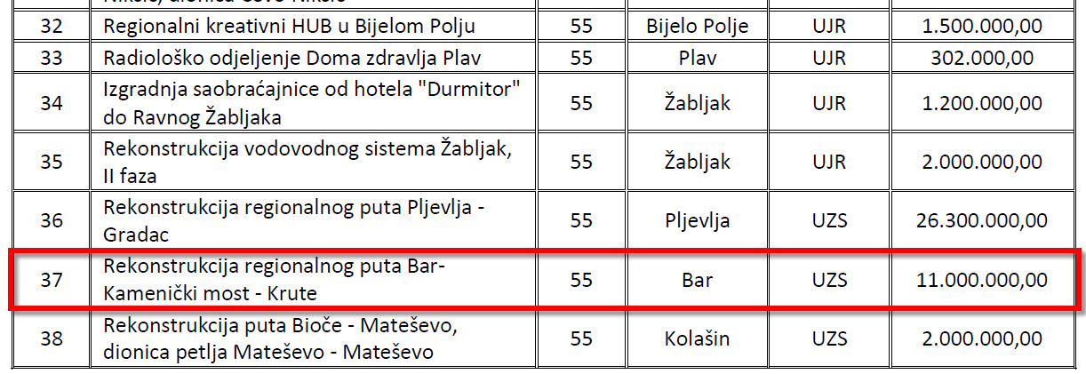 Onih 11. miliona pominju se u dokumentu koji se zove: Predlog liste prioritetnih kapitalnih projekata koji se finansiraju iz kapitalnog budžeta države u 2022. godini.