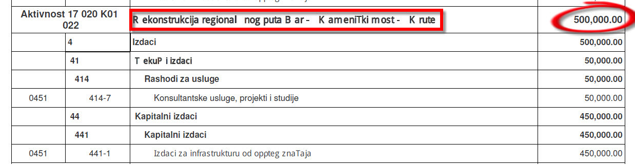 Dakle, da laicima pomognemo. Komisija Vlade je ocijenila projekte koji se finansiraju iz kapitalnog budzeta, što u prevodu znači da su potvrdili da će taj put koštati 11 miliona eura, a onim značajnijim dokumentom odnosno Nacrtom budžeta za sljedeću godinu je planirano svega 500.000 eura.