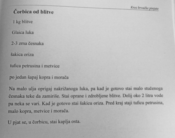 Jasna je na kraju gostovanja pročitala i recept za pripremanje čorbe od blitve iz knjige „Kroz brvačke pinjate“, Milice Kovačević.