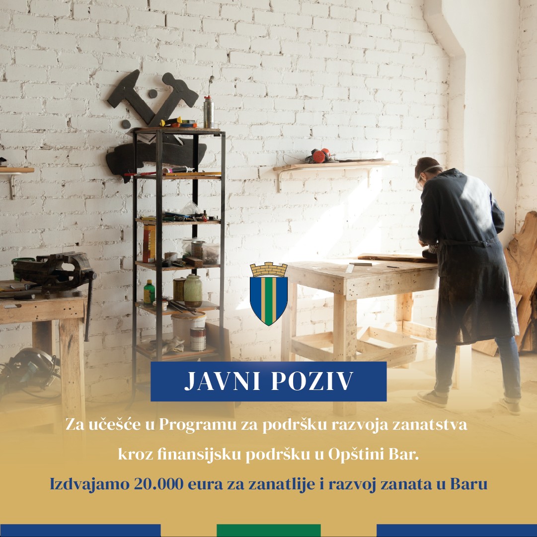 Takođe, raspisan je i Javni poziv za za učešće u Programu za podršku razvoja zanatsva na koji pravo da apliciraju imaju zanatlije koje su registrovane u skladu sa Zakonom o privrednim društvima, preduzetnici i privredna društva u skladu sa Zakonom o zanastvu kojima je pretežna djelatnost obavljanje jednostavnog ili složenog zanata, registrovane zanatlije koje imaju Prijavu za obavljanje zanatske djelatnosti podnijetu Sekretarijatu za privredu Opštine Bar, kao i nezaposlena lica sa prebivalištem u opštini Bar.