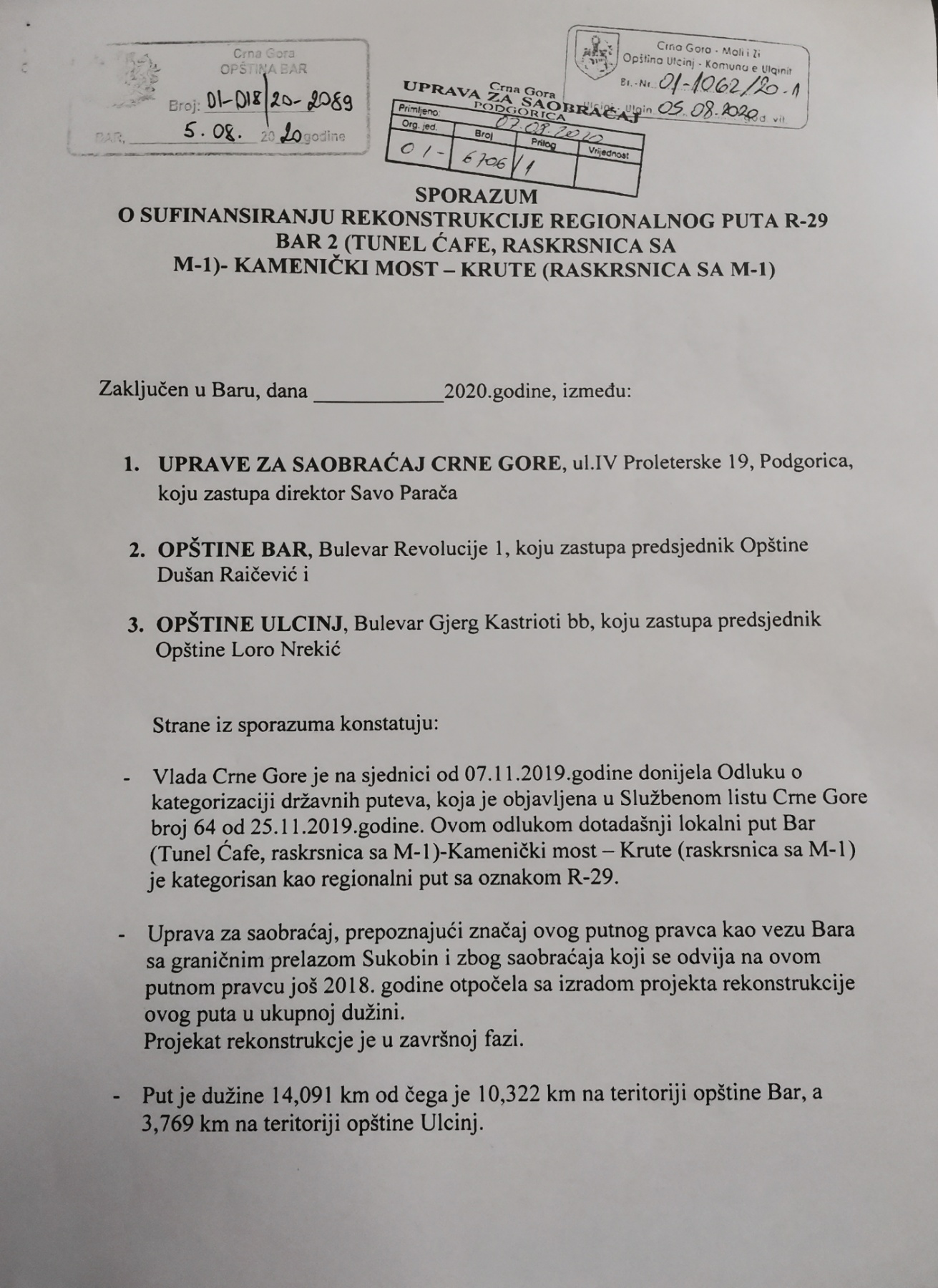 Osim što je isti sa nivoa lokalne uprave bio definisan kao prioritet, posjećamo javnost da smo još u avgustu 2020. godine sa Upravom za saobraćaj i Opštinom Ulcinj potpisali Sporazum kojim smo se obavezali da iz lokalnog budžeta obezbijedimo sredstva za eksproprijaciju kako bi ubrzali procedure i konačno dočekali početak izgradnje. Nismo ostali samo na potpisu Sporazuma, već smo u decembru prošle godine uplatili Ministarstvu finansija i socijalnog staranja iznos od 666.558,00 eura za eksproprijaciju, shodno procjeni koju je sačinila Uprava za katastar i državnu imovinu i time ispunili svoje obaveze u nadi da će državni organi preduzeti dalje radnje kako bi se raspisao izvođački tender i započeli radovi.