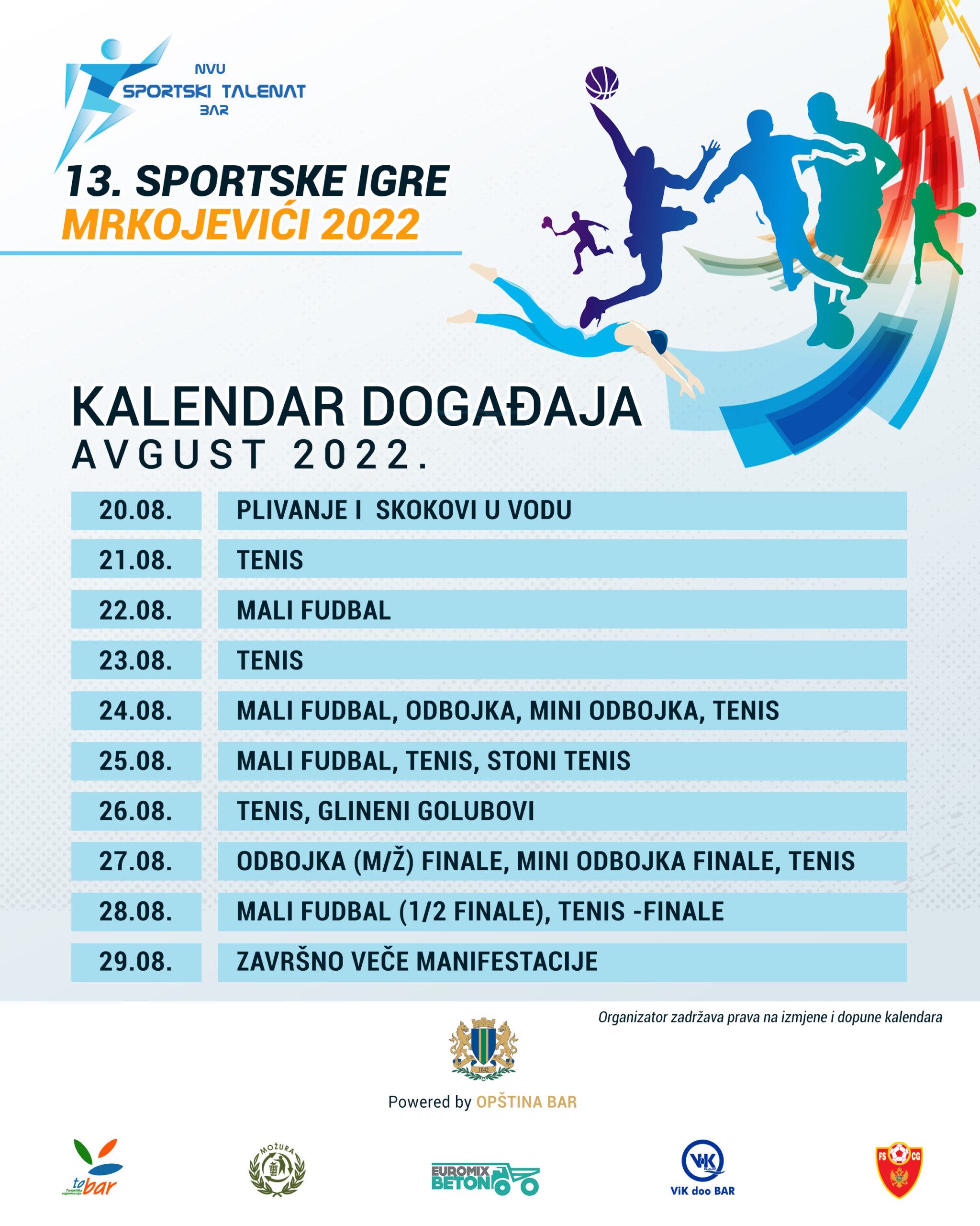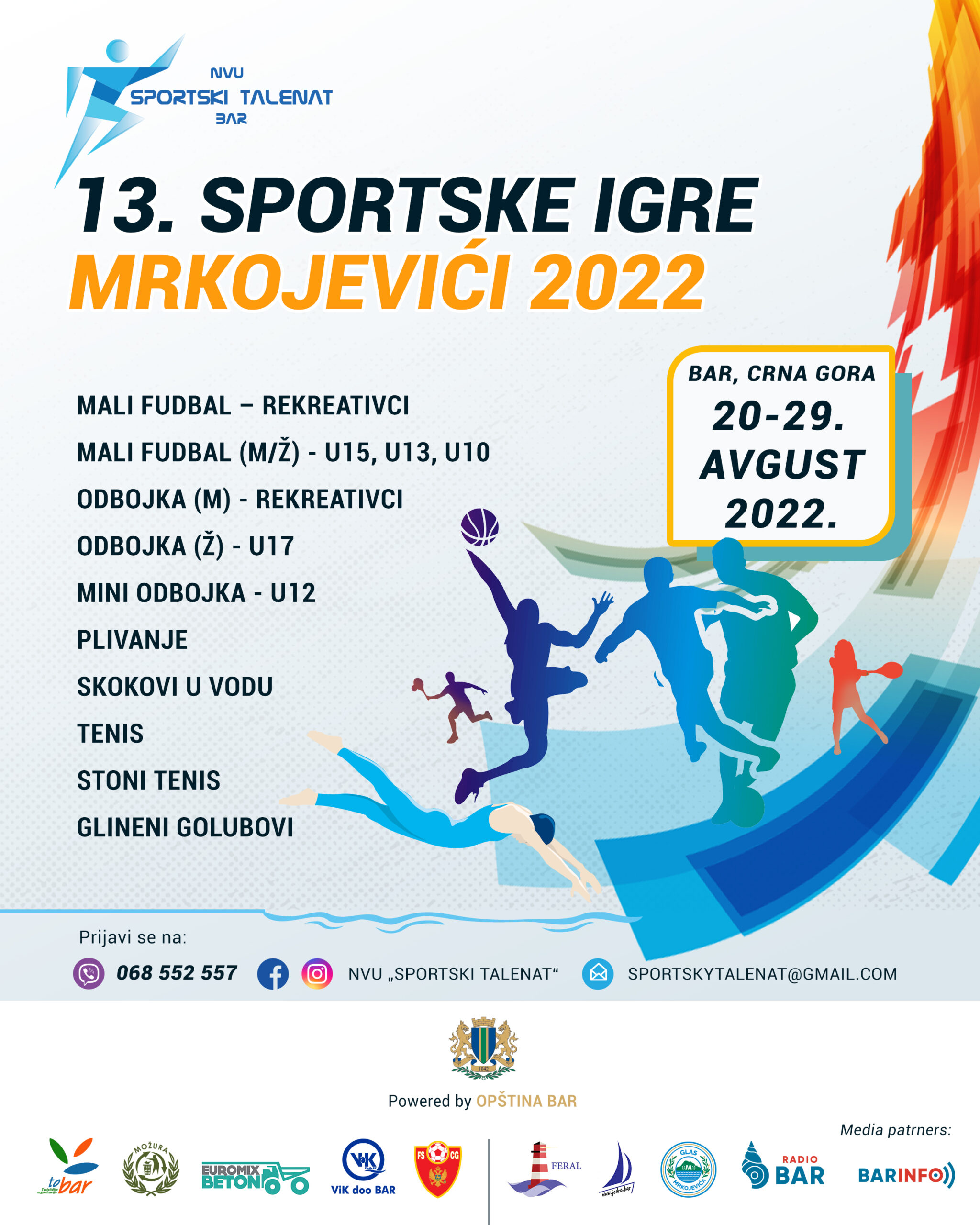 Uz generalno pokroviteljstvo Opštine Bar u periodu od 20-29.avgusta, biće održane 13. Sportske Mrkojevići 2022.