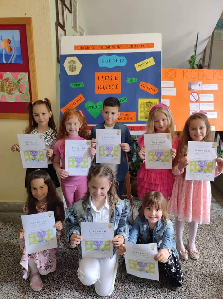Danas je u OŠ Mrkojevići održano školsko takmičenje recitatora, pravi festival poezije. “Danas su naša djeca bojila svijet stihovima. Čulo se puno divnih interpretacija i lijepih pjesama (veselih, tužnih, ozbiljnih, duhovitih, sjetnih, buntovnih, ljubavnih, prkosnih, razigranih …). Svako je pronašao sebi dragi stih i toplu rimu.” saoošteno je iz OŠ “Mrkojevići”.