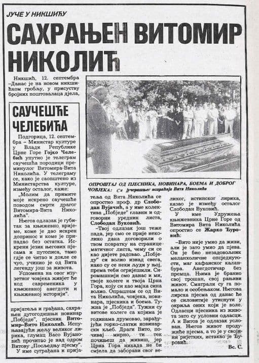 I u kojoj mjeri je u Pobjedi Vitova smrt ostala kao jedna duboka rana: tadašnji glavni i odgovorni Slobodan Vuković, na sahrani pjesnika u Nikšiću otkrio je, da je samo nekoliko dana ranije sa Vitomirom dogovorio njegov povratak na stranice matičnog lista.