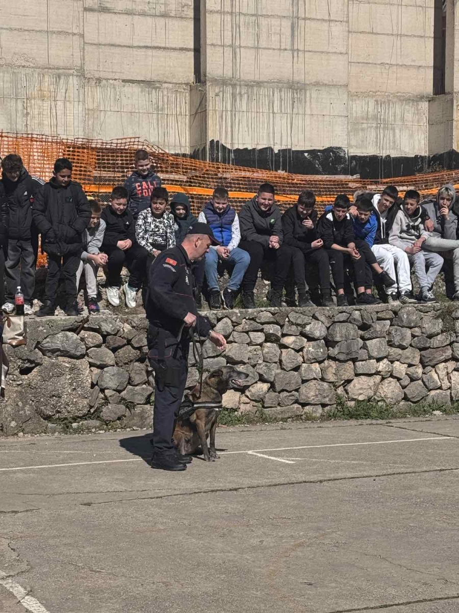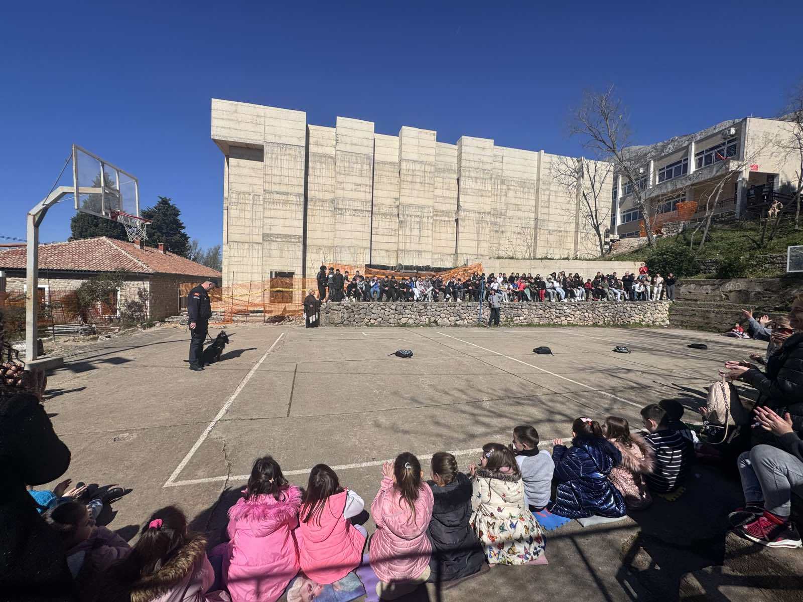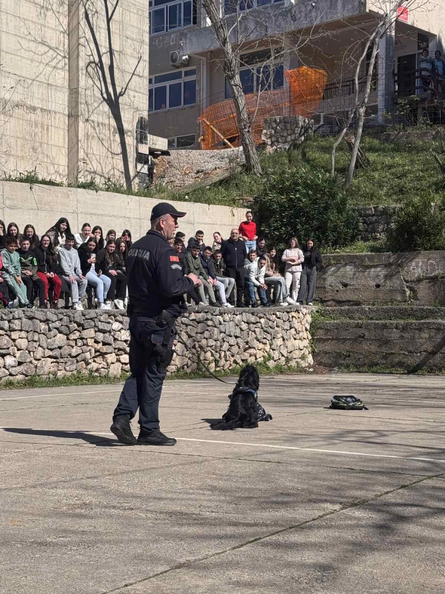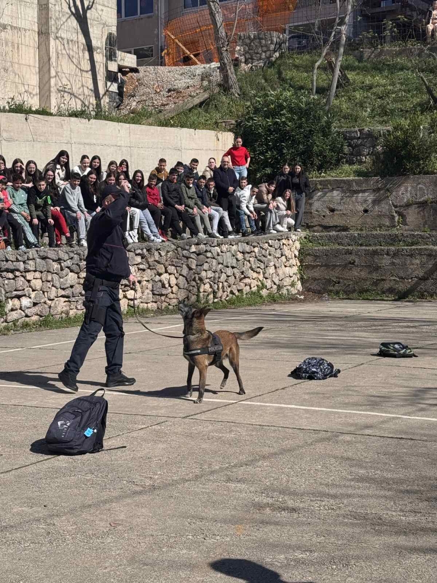 Tokom posjete, učenici su imali jedinstvenu priliku da uživo prate demonstraciju rada vrsnih službenih pasa obučenih za otkrivanje opojnih droga, eksplozivnih materija i novca. Impresivne vježbe su s velikim oduševljenjem pratili učenici svih uzrasta, od I do IX razreda.